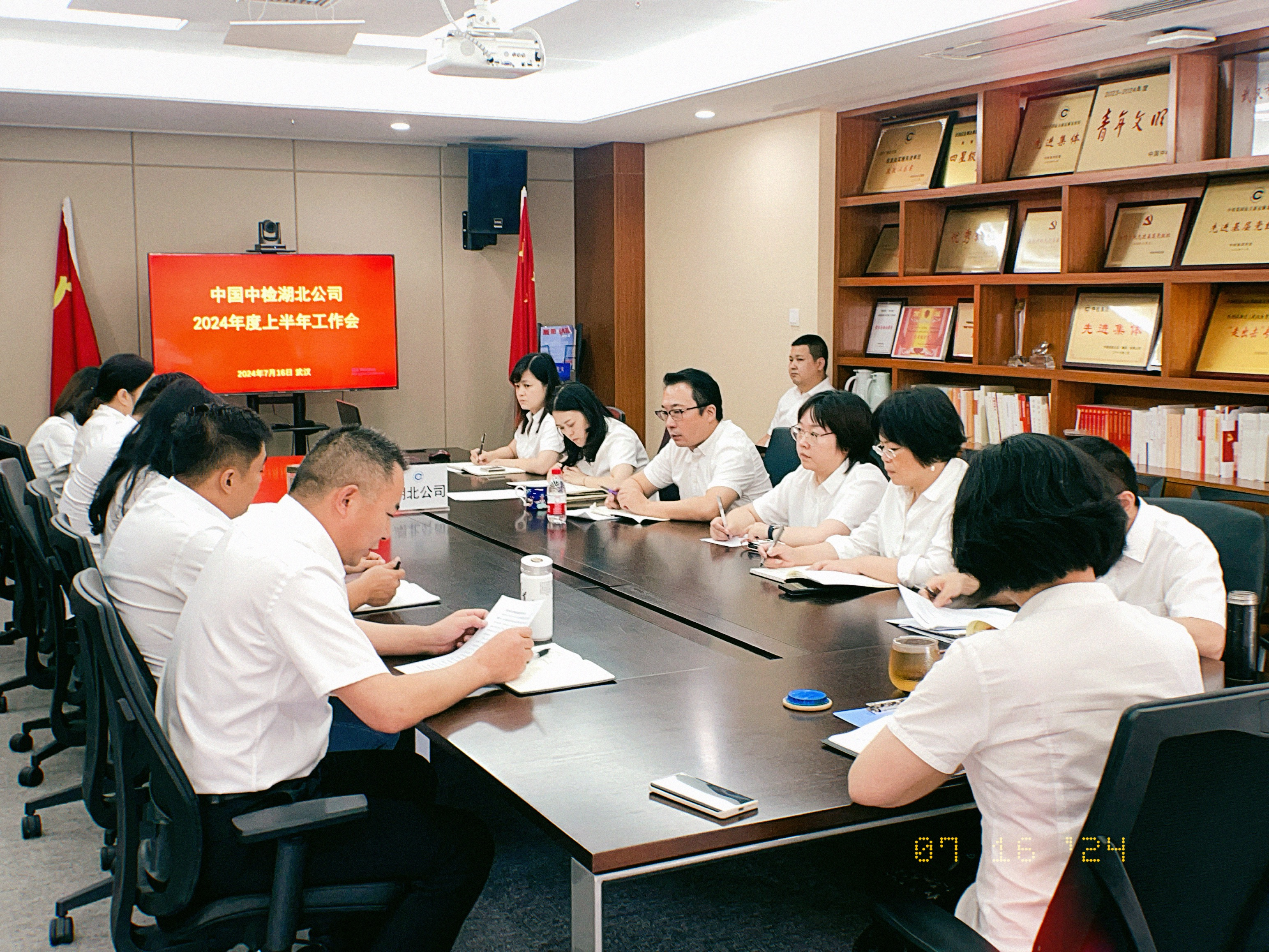 近日,中国中检湖北公司召开2024年上半年工作会议,传达落实集团半年工作会议暨人才工作会议精神,总结上半年工作,部署下半年任务。湖北公司党委书记、总经理黄路意出席会议并总结讲话,党委委员、副总经理李晓明主持会议,党委班子胡德聪、张及亮及公司中层管理人员参加会议。