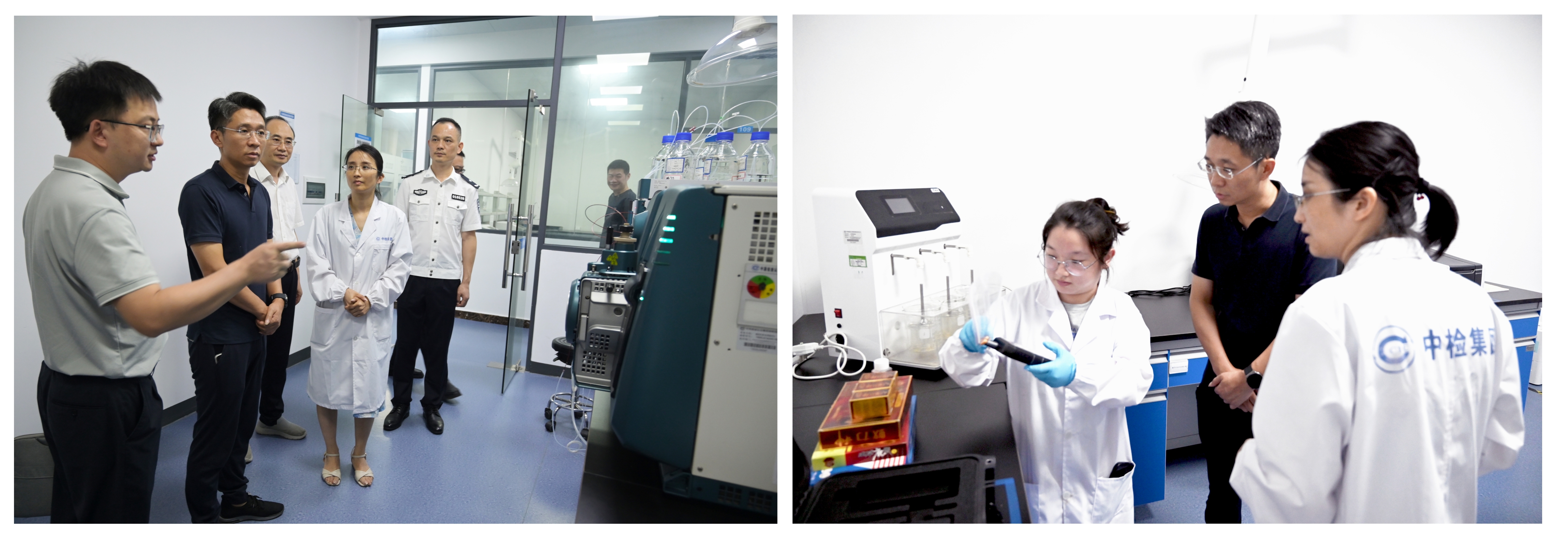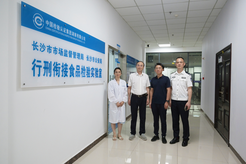 7月21日,长沙市市场监管局党组书记蒋文武一行莅临中国中检湖南公司(华中区域总部)行刑衔接食品检验实验室调研交流,中国中检湖南公司(华中区域总部)党委书记、董事长、总经理刘向荣,长沙市公安局食药环侦支队负责人杨毅军等陪同调研。