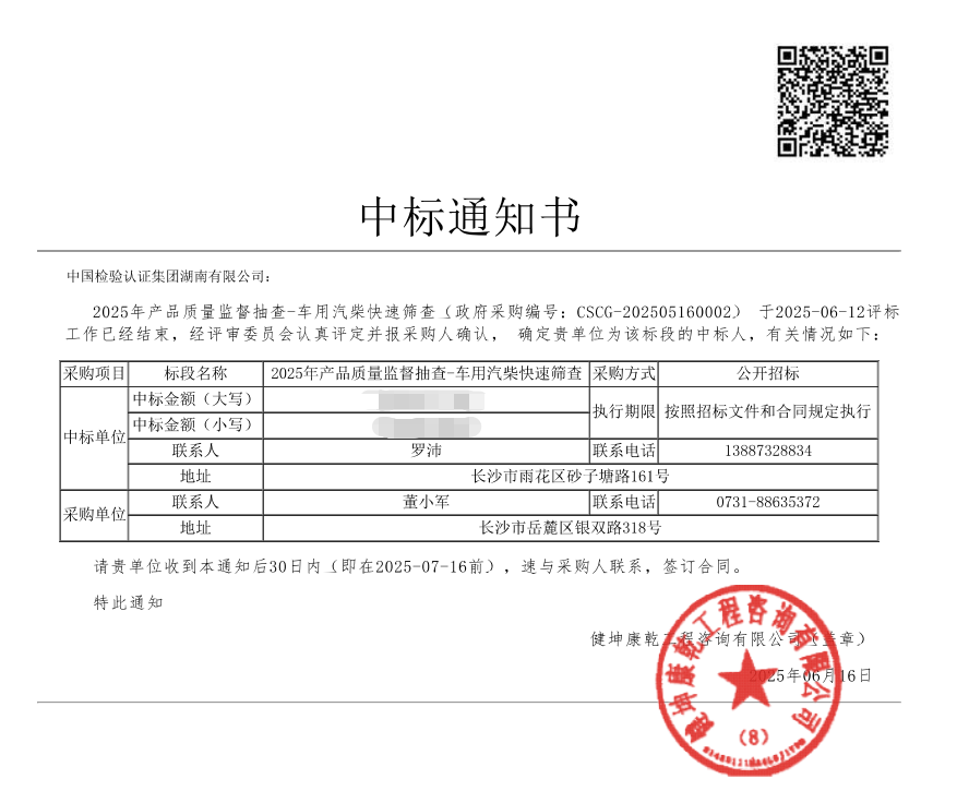 此次中标不仅是对湖南公司专业能力的认可,也是对湖南公司在保障市场秩序、促进环境保护方面所做贡献的肯定。未来,湖南公司将继续发挥专业优势,为长沙市的成品油市场监管提供强有力的技术支持,助力长沙打赢蓝天保卫战。